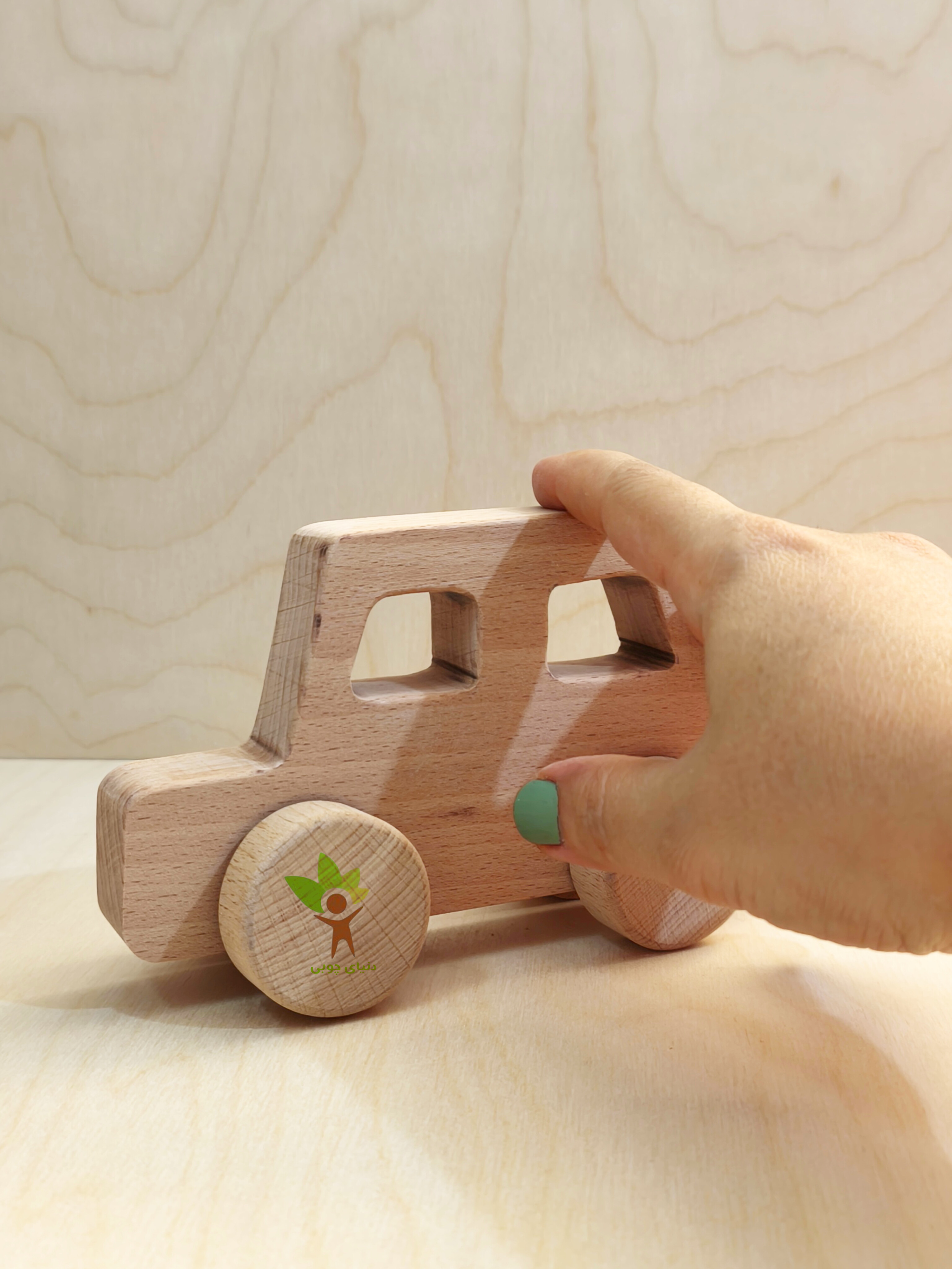 چرخ ماشین متحرک است . عکس محصول از جنس چوب راش می باشد.