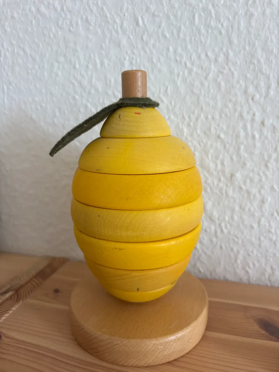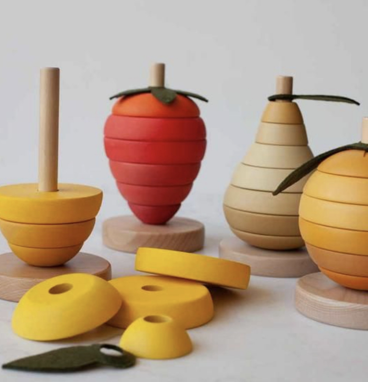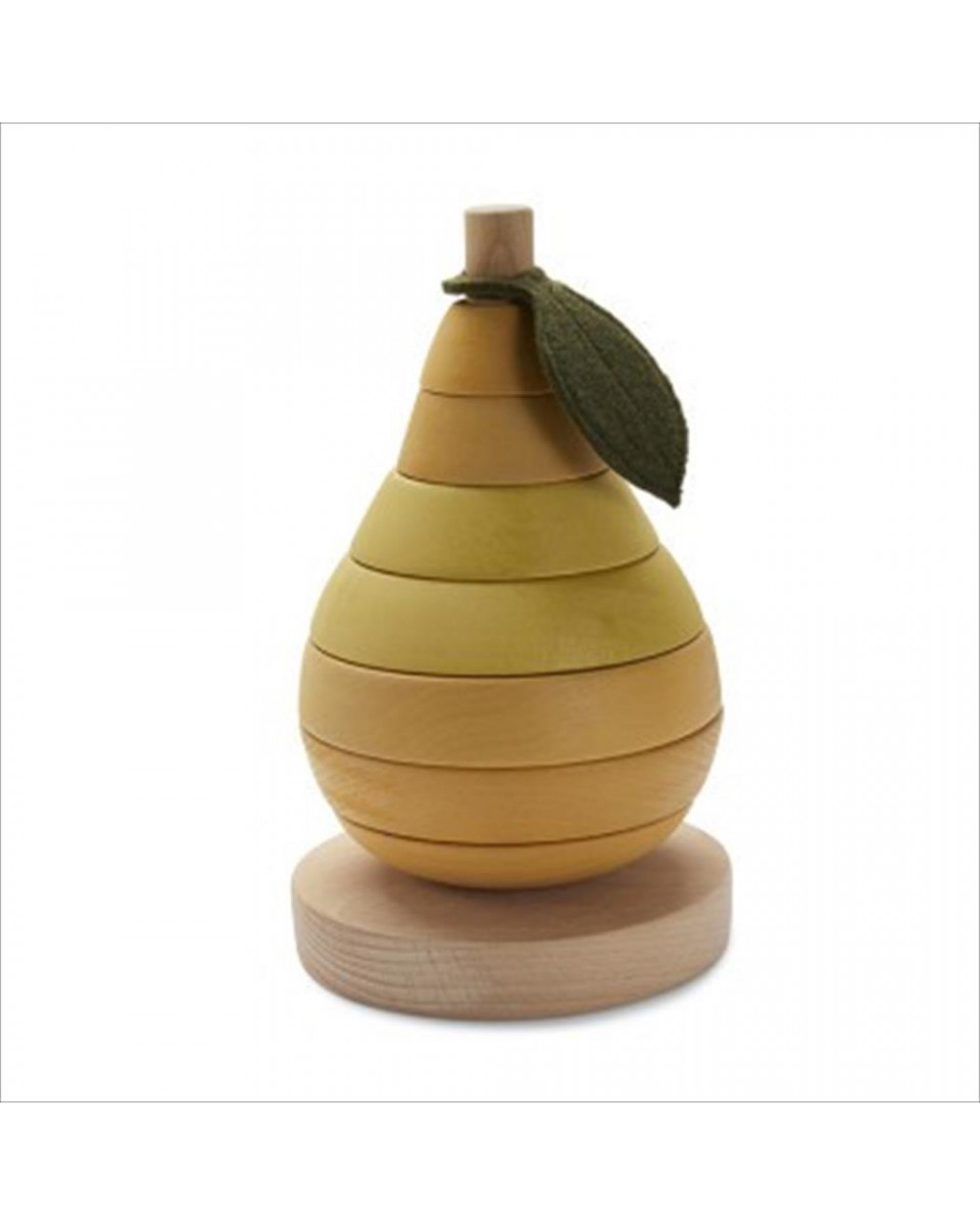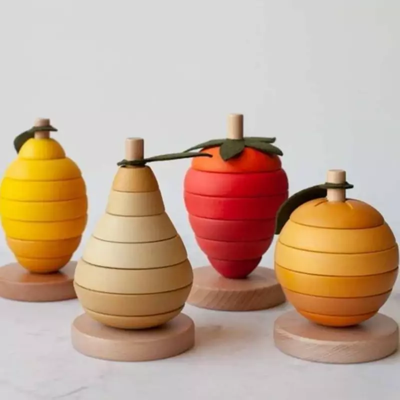 این اسباب بازی از قطعات چوبی رنگارنگ به شکل میوه طراحی شده است که کودک باید آنها را روی هم قرار دهد و یک برج جذاب بسازد. ظاهر ساده آموزنده این محصول باعث شده در عین سرگرمی، فواید اما بسیاری برای رشد کودک داشته باشد.